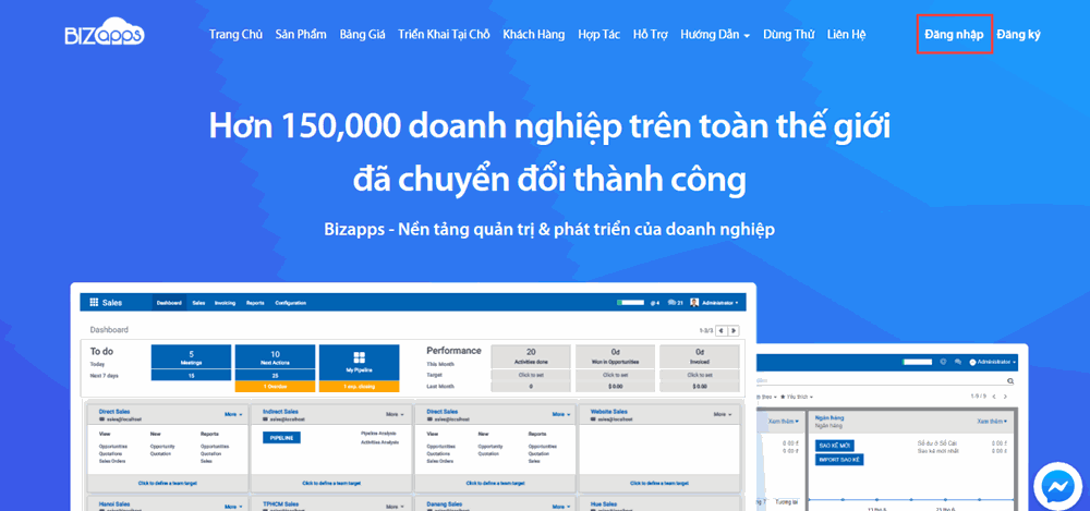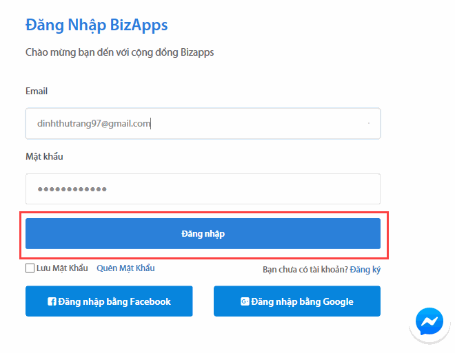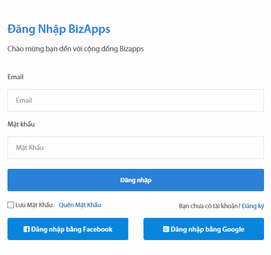 Đăng nhập bằng tài khoản đăng ký trên Bizapps