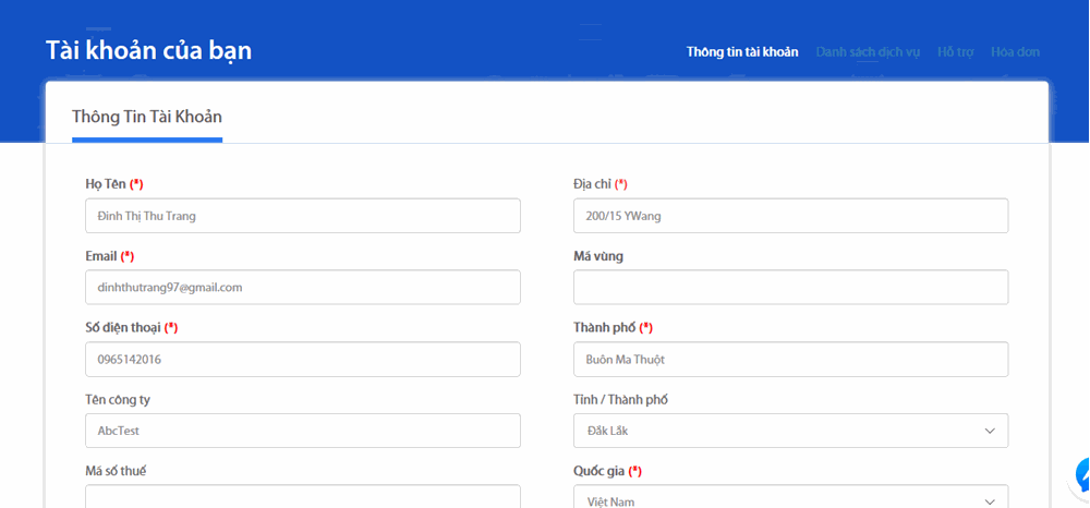 Lưu ý: Tại màn hình thông tin tài khoản, bạn cập nhật lại Số điện thoại (bạn nhập thông tin chính xác để Bizapps có thể liên lạc hỗ trợ bạn khi cần thiết)