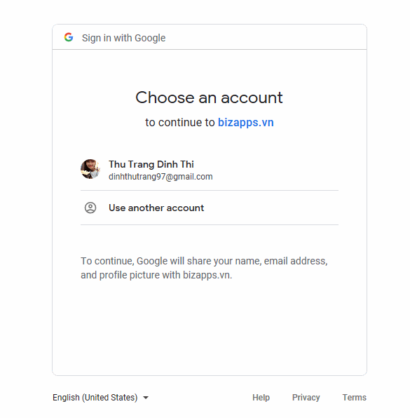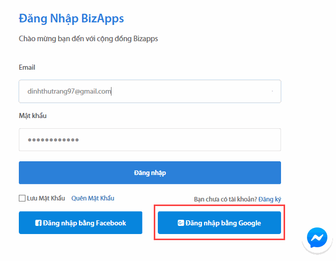 Hiện tại, Bizapps chúng tôi có đăng nhập bằng tài khoản Google, các bước thực hiện như sau: