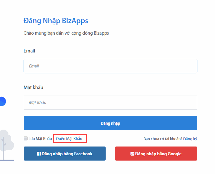 Để lấy lại mật khẩu tài khoản trên bizapps bạn làm theo các bước sau: