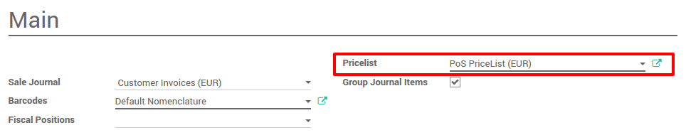 Ở phía bên phải tại ô Pricelist (Bảng giá) bạn có thể gán bảng giá cho điểm bán hàng mà bạn cần.
