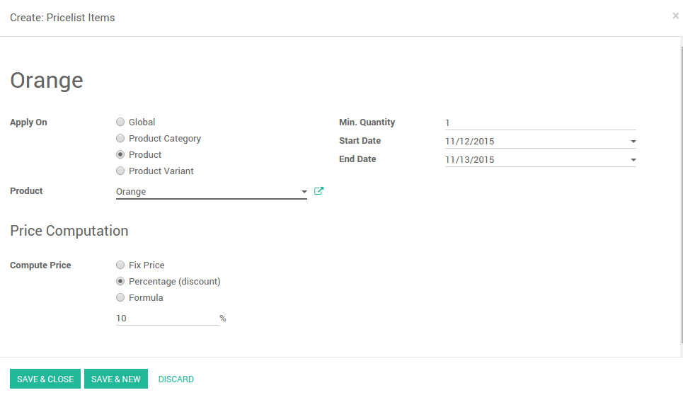 Bạn có thể thực hiện bằng cách thêm nó vào sản phẩm hoặc thêm vào danh mục và áp dụng tỷ lệ giảm giá. Tính giá khác có thể thực hiện với bảng giá.