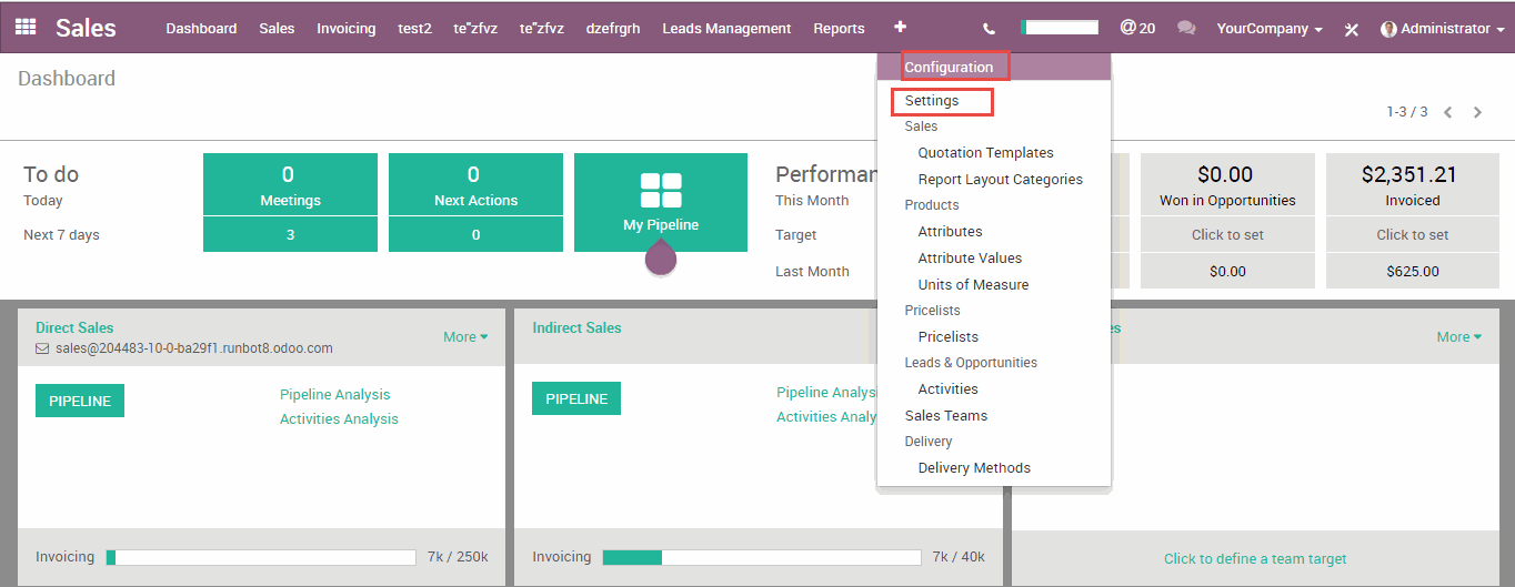 Chọn menu Configuration (Cấu hình) -> Setting (Cài đặt)