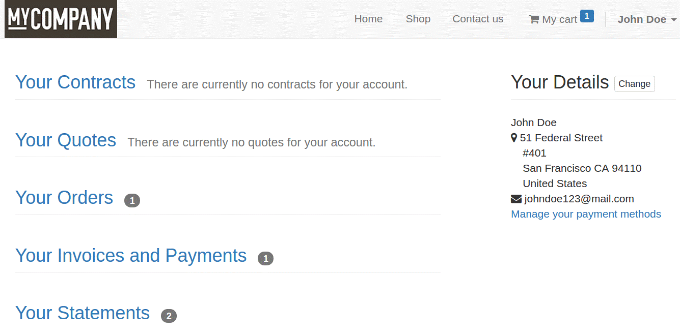 Sau đó, họ có thể thấy toàn bộ lịch sử của họ. Địa chỉ chính (trên hóa đơn) cũng có thể sửa đổi.