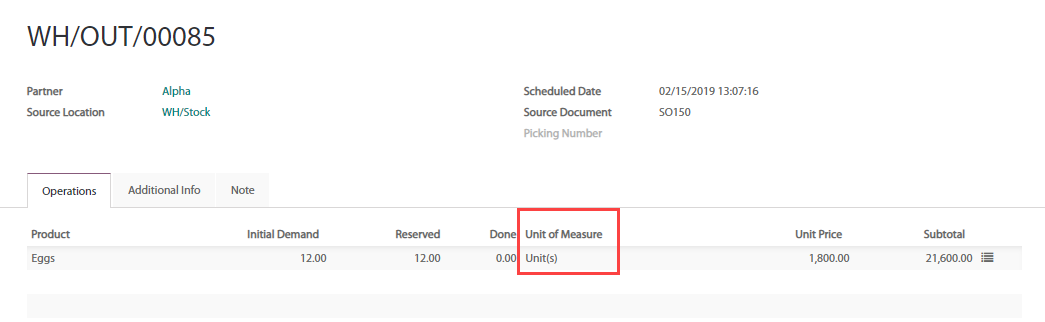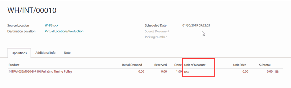 - Việc dịch chuyển nội bộ cũng có hiển thị đơn vị đo của sản phẩm