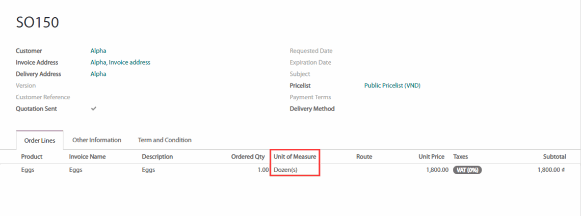Trứng được bán theo hộp (1 hộp/ 10 trứng). Bạn có thể chọn đơn vị hộp này trong đơn bán hàng. Sau khi thực hiện xong, giá sẽ được tự động tính theo đơn vị đo mà bạn đã chọn.