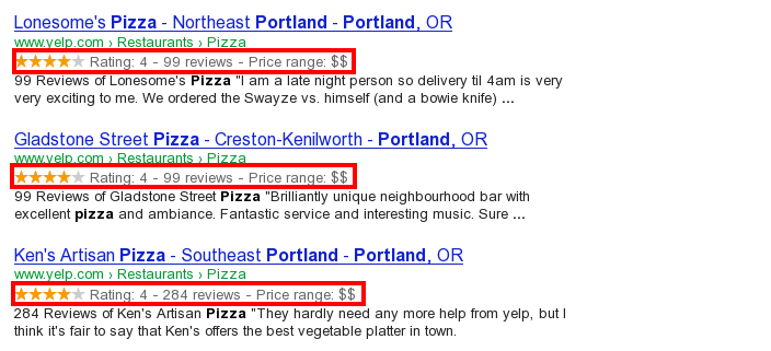 Google hỗ trợ một số đoạn mã phong phú cho các loại nội dung, bao gồm: Nhận xét, Con người, Sản phẩm, Doanh nghiệp, Sự kiện và Tổ chức.