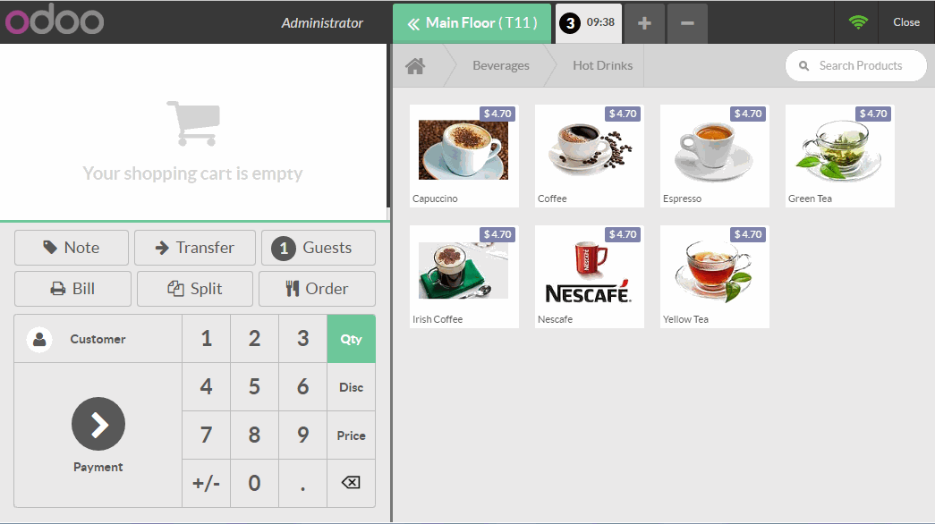 Phân hệ điểm bán hàng của Odoo có giao diện đơn giản, thân thiện với người sử dụng. Phân hệ điểm bán hàng có thể sử dụng online hoặc offline trên ipads, máy tính bảng, máy tính xách tay.