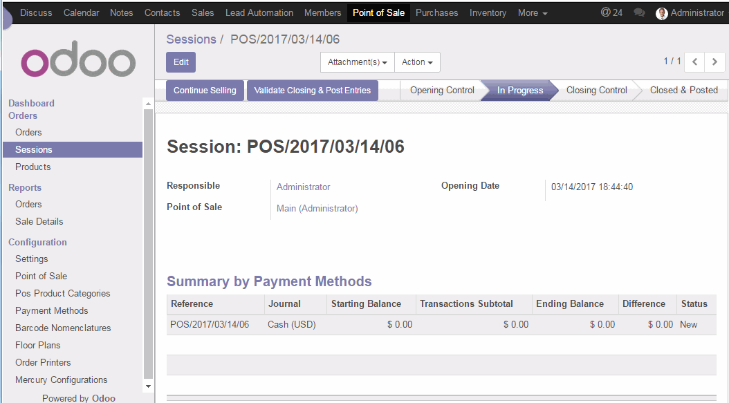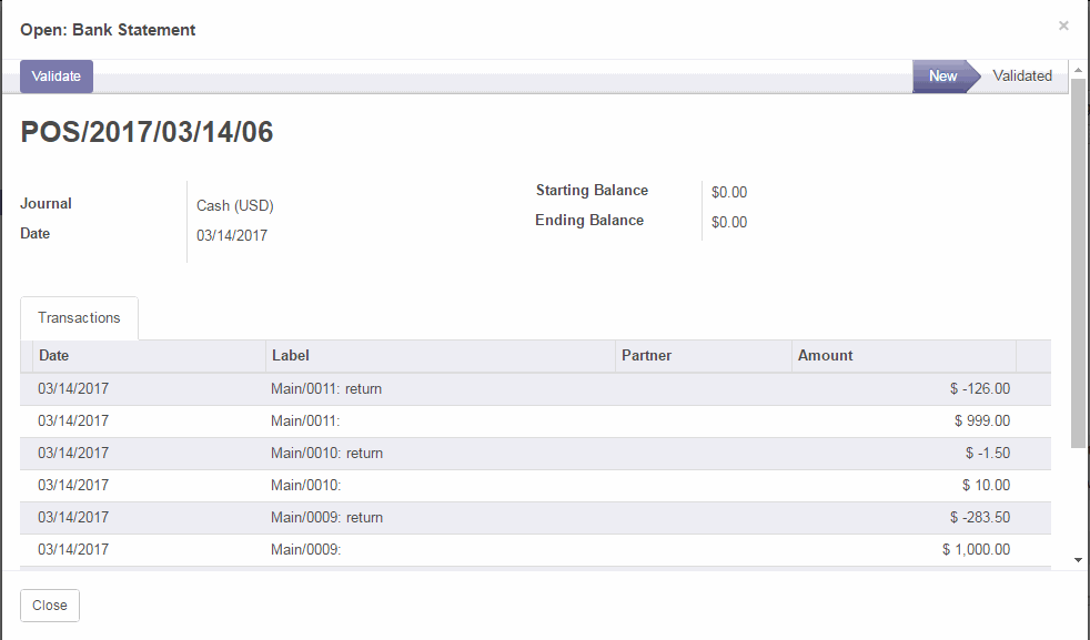Nhấn lại vào nút Close (Đóng) của điểm bán hàng để thoát khỏi giao diện của điểm bán hàng. Dưới đây bạn có thể nhìn thấy được tổng quan các giao dịch của Điểm bán hàng
