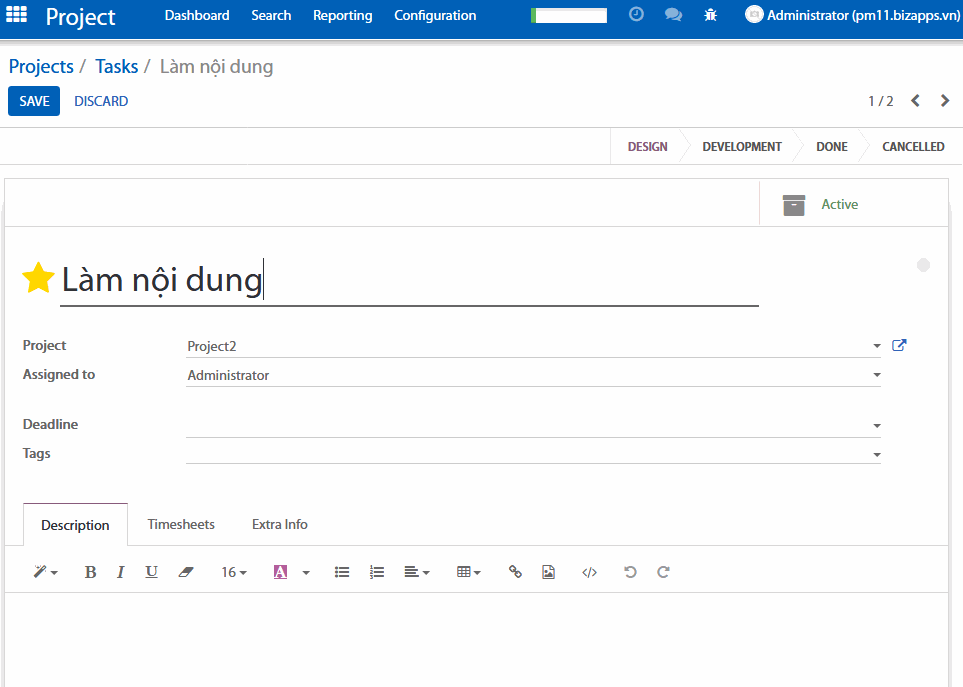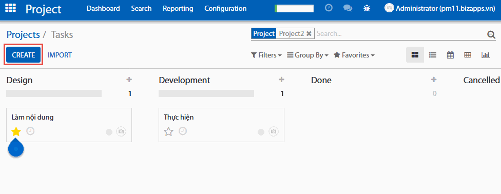 Một khi bạn đã thiết lập và cấu hình một dự án, bạn có thể dễ dàng tạo ra nhiệm vụ cho nó. Bạn chỉ cần vào dự án và click tạo một nhiệm vụ.