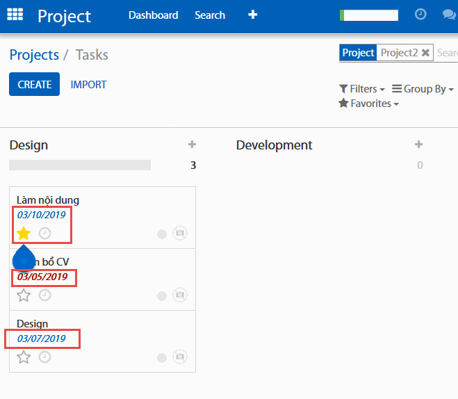 Nếu một nhiệm vụ quá hạn, deadlines của chúng sẽ được bôi màu đỏ (có thể xem trong giao diện dạng dang sách – list), do đó bạn có thể dễ dàng theo dõi sự tiến triển của các nhiệm vụ khác nhau.