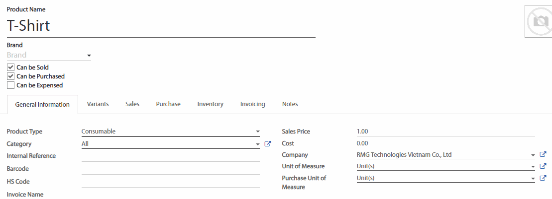 Kế tiếp chúng ta có thể tạo sản phẩm mong muốn. Chúng ta vẫn chưa biết giá của chiếc áo thun bời vì chúng ta vẫn cần gửi đi Yêu cầu báo giá.