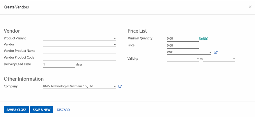 Khi thêm một nhà cung ứng mới, bạn cũng có thể thêm các thông tin bổ sung như tên hoặc mã sản phẩm thầu cung ứng, hiệu lực của giá cả và số lượng tối thiểu cần thiết cuối cùng. Những thông tin này có thể được bổ sung và sửa đổi cho các nhà cung cấp hiện có chỉ đơn giản bằng cách nhấp chuột vào dòng Các nhà cung cấp.