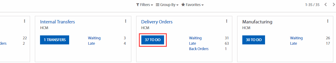 Để bỏ hàng hư hỏng ra khỏi các lô hàng sắp xuất kho, đi đến Inventory (Tồn kho) > Dashboard (Bảng thông tin) > Delivery Orders (Giao hàng)