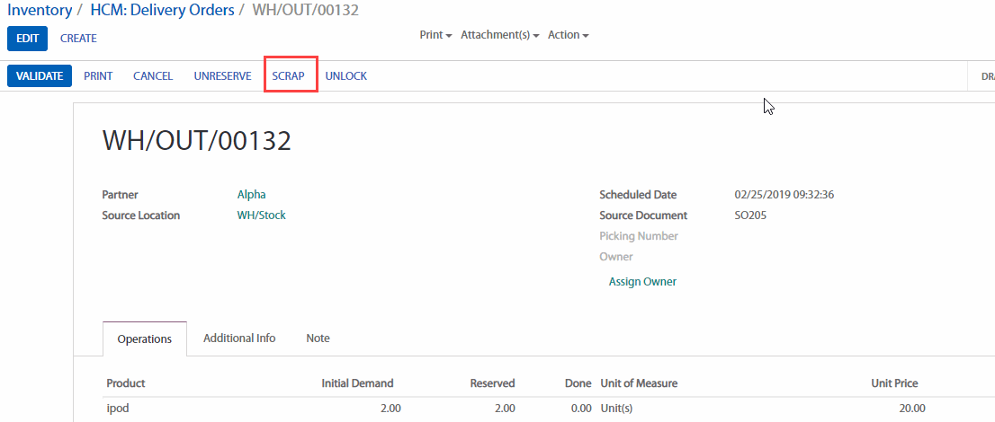 Bỏ hàng hư hỏng từ đơn giao hàng (trong tab Demand)