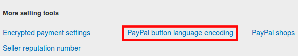 Bây giờ bạn phải thay đổi dạng mã hóa của yêu cầu thanh toán mà Odoo gửi đến Paypal. Để thực hiện, trở lại My selling tools and và nhấp chuột vào PayPal button language encoding trong phần More Selling Tools.