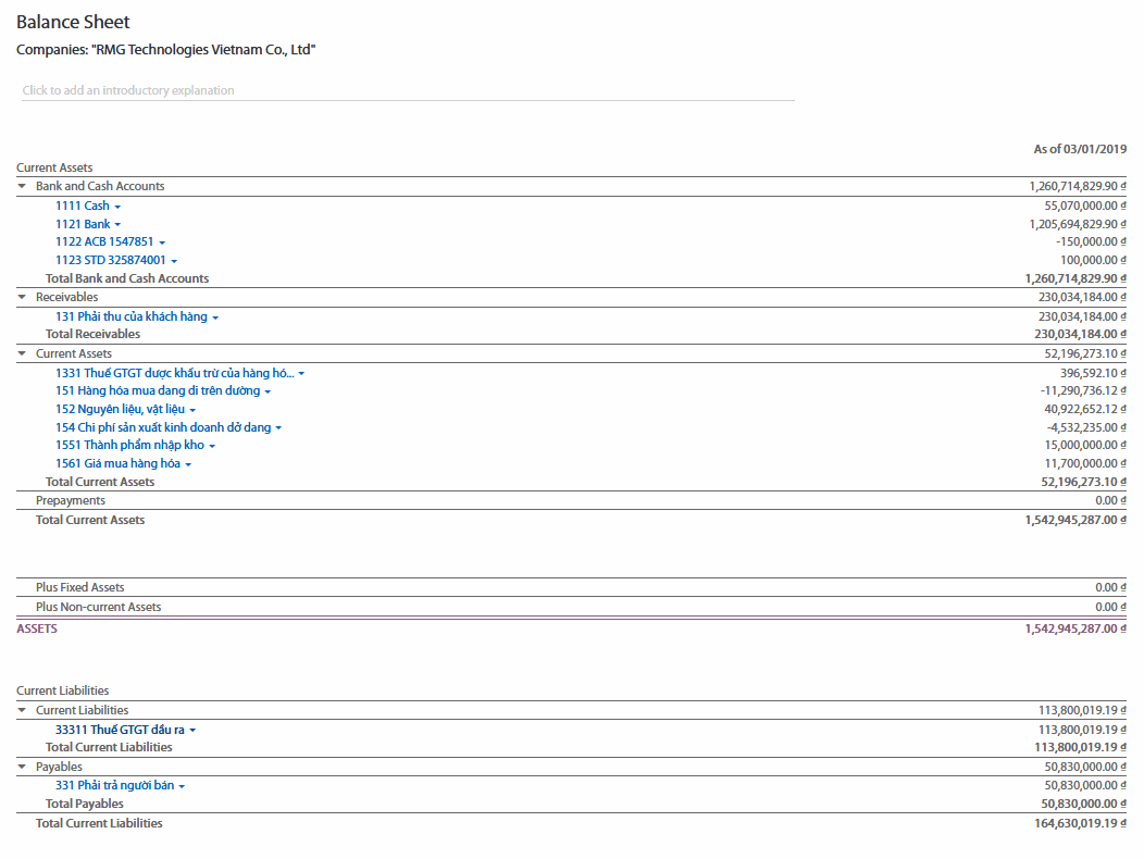 Bạn có thể chú thích các báo cáo để in ra và thực hiện trong menu Adviser. Xuất sang file xls để quản lý việc phân tích bổ sung. Đi sâu vào các báo cáo để xem thêm thông tin chi tiết (các khoản thanh toán, hoá đơn, mục bút toán, ...).