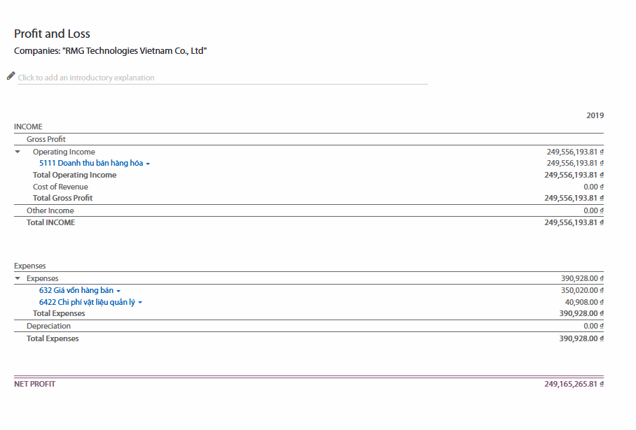 Profit and Loss – Báo cáo kết quả hoạt động kinh doanh