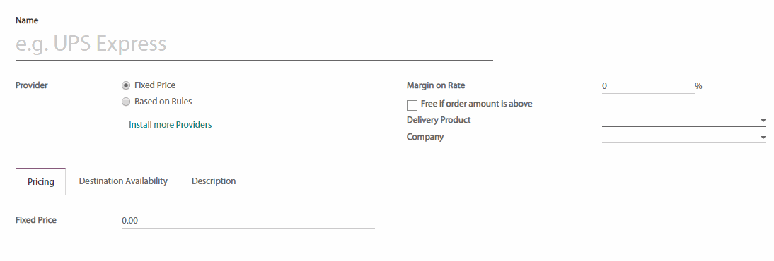 • Nếu chi phí là cố định, đánh dấu vào ô Fixed (Giá cố định). Bạn phải điền giá vào ô Fixed (Giá cố định) trong tab Pricing (Chi tiết giá). Nếu bạn muốn giao hàng dựa theo một số lượng nhất định, đánh dấu vào ô Tùy chọn Free if order amount is above (Miễn phí nếu tổng đơn hàng là nhiều hơn …) và nhập vào giá bạn muốn, chọn sản phẩm mà bạn muốn giao hàng bằng cách ở mục Delivery Product (Sản phẩm phí giao hàng).
