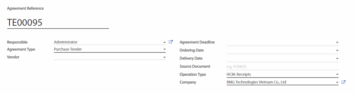 Trong trường Agreement Deadline (Hạn chót đặt hàng), chọn ngày đóng thầu.