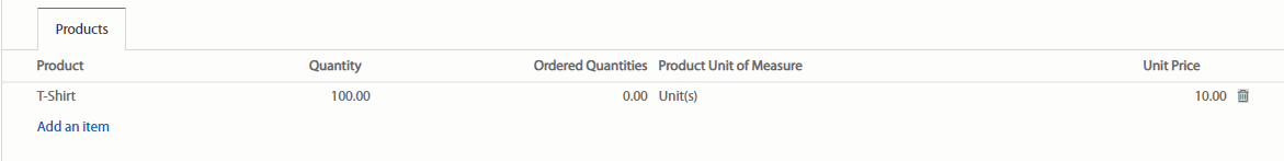 Chọn sản phẩm trong danh sách Product (Sản phẩm), sau đó nhập vào Quantity (Số lượng). Bạn có thể thêm sản phẩm vào với số lượng bạn muốn.