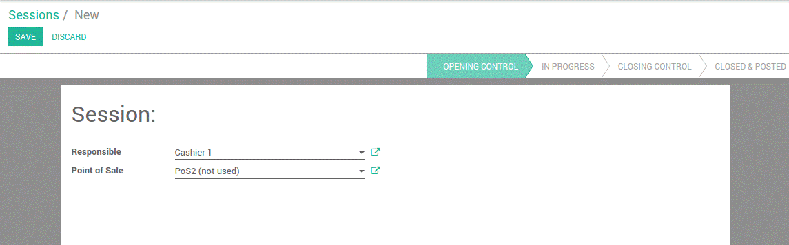 Sau đó nhấn vào New (Mới) và gán đúng Cashier (Thu ngân) vào trường Responsible cho điểm bán hàng