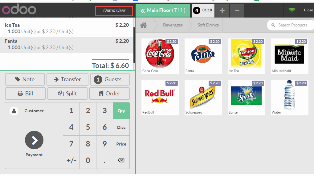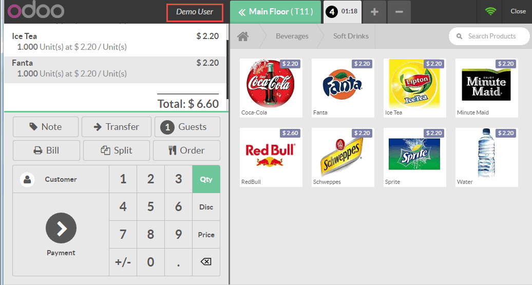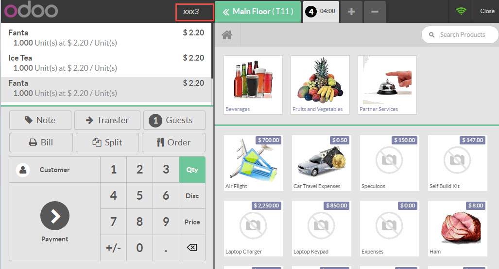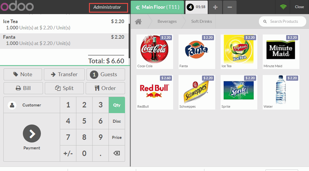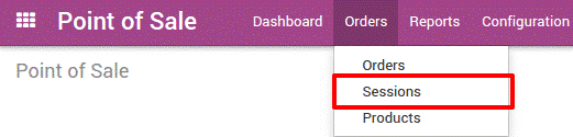 Chọn menu Orders (Đơn đặt hàng) -> Session (Phiên)