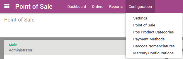 Từ menu Điểm bán lẻ -> Cấu hình -> Thiết lập (Point of Sale -> Configuration -> Settings)