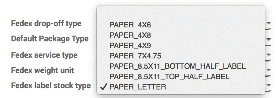 Trong tab Pricing, tại mục Fedex label stock type, bạn có thể chọn một loại nhãn sẵn có.
