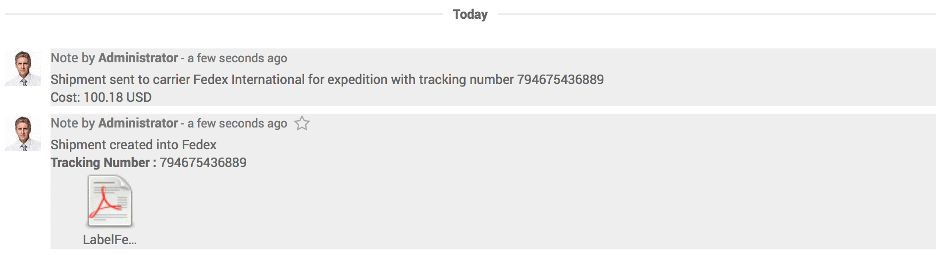 Khi xác nhận đơn bán hàng và rà soát đơn giao hàng với carrier mà bạn thiết lập loại nhãn, Nhãn sẽ xuất hiện trong lịch sử thao tác.