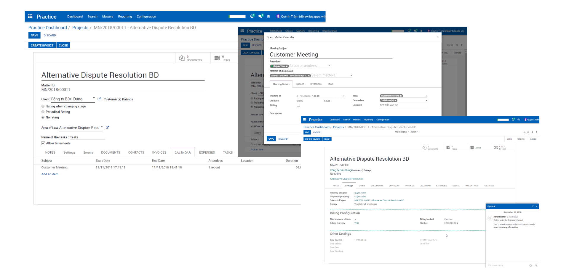 2. Theo dõi Matter (trao đổi công việc qua Channel hoặc các nhân, tạo cuộc họp):