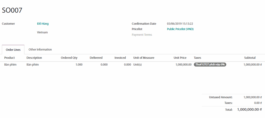 Khi bạn đã thiết lập một sản phẩm, bạn có thể tạo một báo giá hoặc một đơn bán hàng cho sản phẩm đó. Một khi báo giá được xác nhận và chuyển thành một đơn bán hàng, nhiệm vụ sẽ tự động được tạo ra