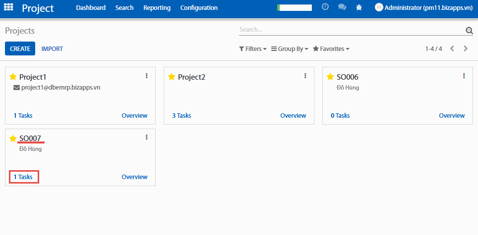 Từ module Dự án, bạn sẽ thấy một nhiệm vụ mới sẽ xuất hiện: