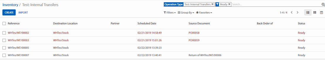 Từ bảng điều khiển, chọn 1 luân chuyển của 1 trong hai kho. Để làm điều này, nhấp chọn More > Immediate Transfer (Dịch chuyển ngay).