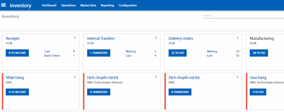 • Nhận hàng và giao hàng theo nhiều bước có thể được cấu hình dễ dàng cho mỗi kho hàng.