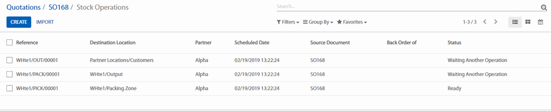Hàng hóa sẽ được dịch chuyển từ WH/Stock to WH/Packing Zone trong bước đầu tiên. Sau đó được dịch chuyển từ WH/Packing Zone đến WH/Output. Cuối cùng nó sẽ được giao từ WH/Output đến điểm giao hàng cuối cùng.