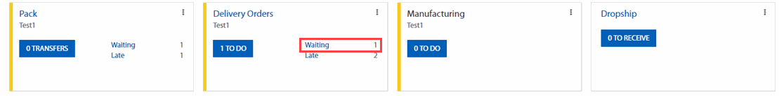 Đảm bảo rằng bạn có đủ sản phẩm tồn kho, đi đến Inventory và nhấp chọn liên kết Waiting phía dưới thẻ kanban Pick