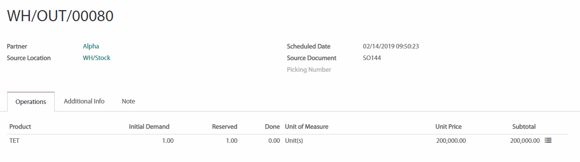 Bạn cần cấu hình Operations Types (Loại hoạt động) để cho phép di chuyển gói hàng. Vào Configuration (Cấu hình) > Operations Types (Loại hoạt động). Chọn một hoạt động bạn cần thực hiện, đánh dấu vào dòng Allow moving packs (Cho phép di chuyển gói).