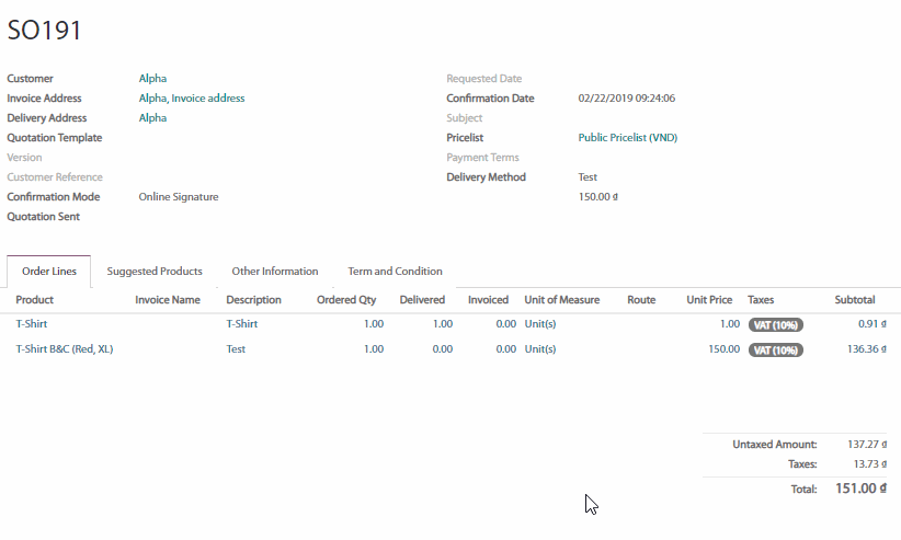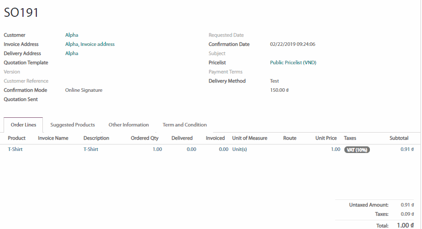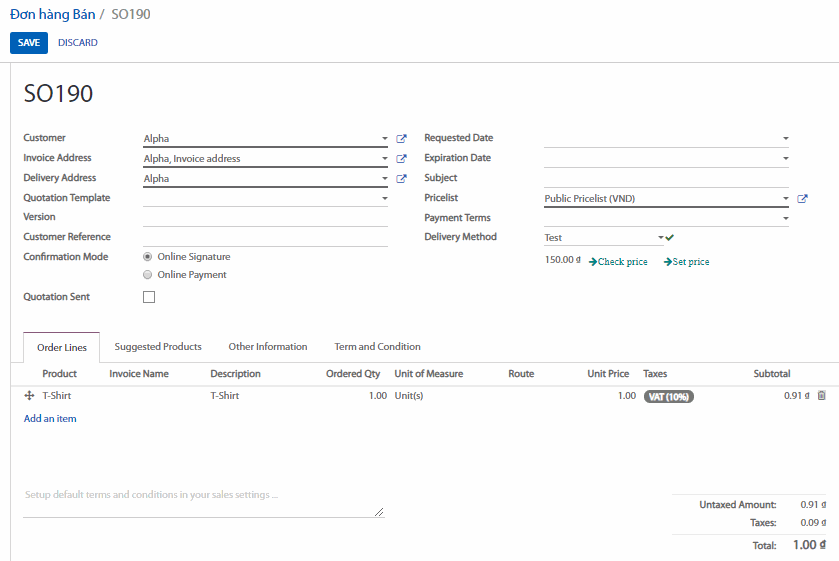 Giá được tính toán khi bạn lưu đơn bán hàng. Xác nhận đơn bán hàng và tiến hành giao sản phẩm.