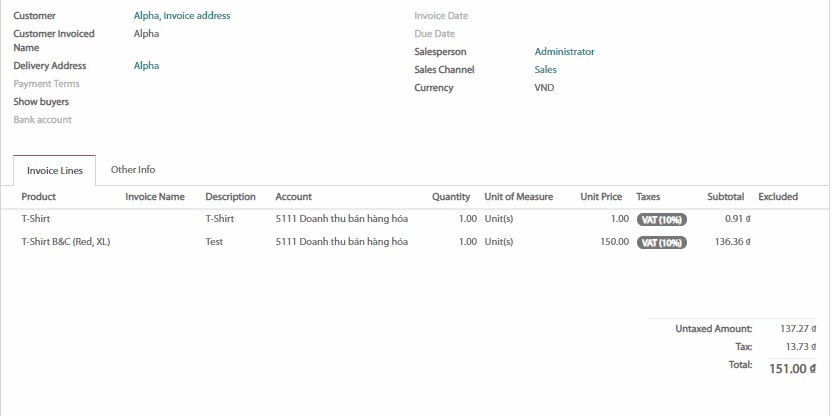 Để lập hóa đơn cho phí giao hàng trên đơn bán hàng thì bạn có thể nhấp vào Set price (Đặt giá), một dòng có thể được thêm vào cùng với tên của phương thức giao hàng cho mỗi sản phẩm. Phí này khác nhau tùy theo mức giá thực tế.